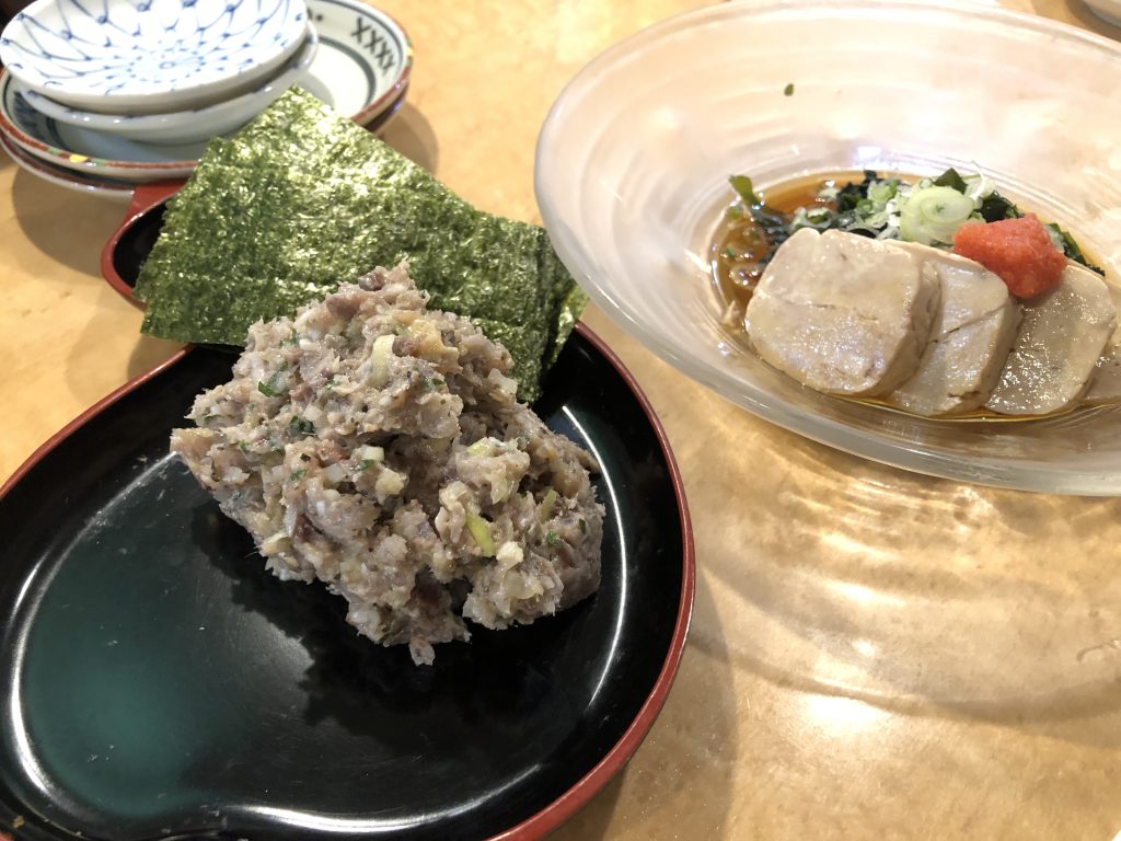 お寿司ももちろん美味しいのですが、、、その他にもあん肝、卵焼き、鯵のなめろうなどお酒が進むものばかり注文。