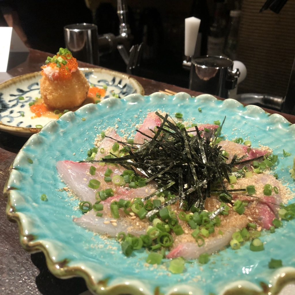 胡麻かんぱちは脂の乗ったかんぱちとゴマの風味が合わさってとても濃厚で美味でした。胡麻とお魚の組み合わせが好きなので個人的にこういったメニューを見かけるとすぐに頼んでしまいます、、、。