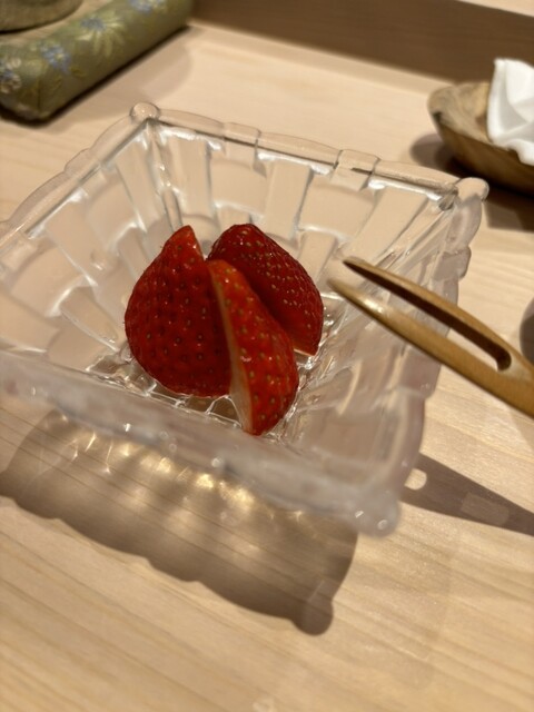 ハマグリの酒蒸しはハマグリの身が大きく一緒にお出しを飲んでいただきました。お出汁が優しいお味で、伺った日は寒い日だったのでより一層お出汁がしみました。そしてこちらのお皿がそのままお出汁を飲めるような作りになっていて最後の一滴迄楽しむことが出来ました♪